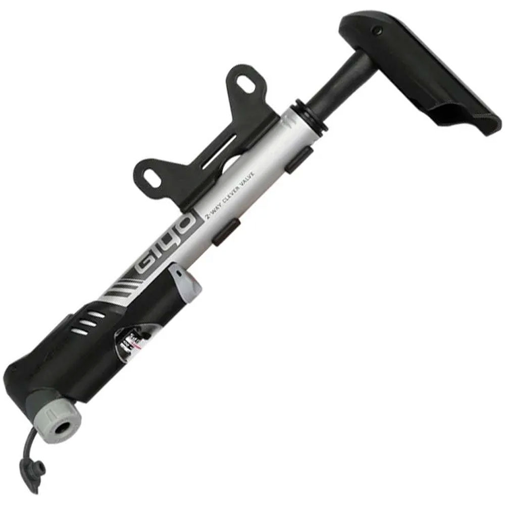 Компактный насос. Алюминиевый корпус, автоматический авто/вело ниппель, складная ручка, манометр, давление до 8 Bar/120 PSI.