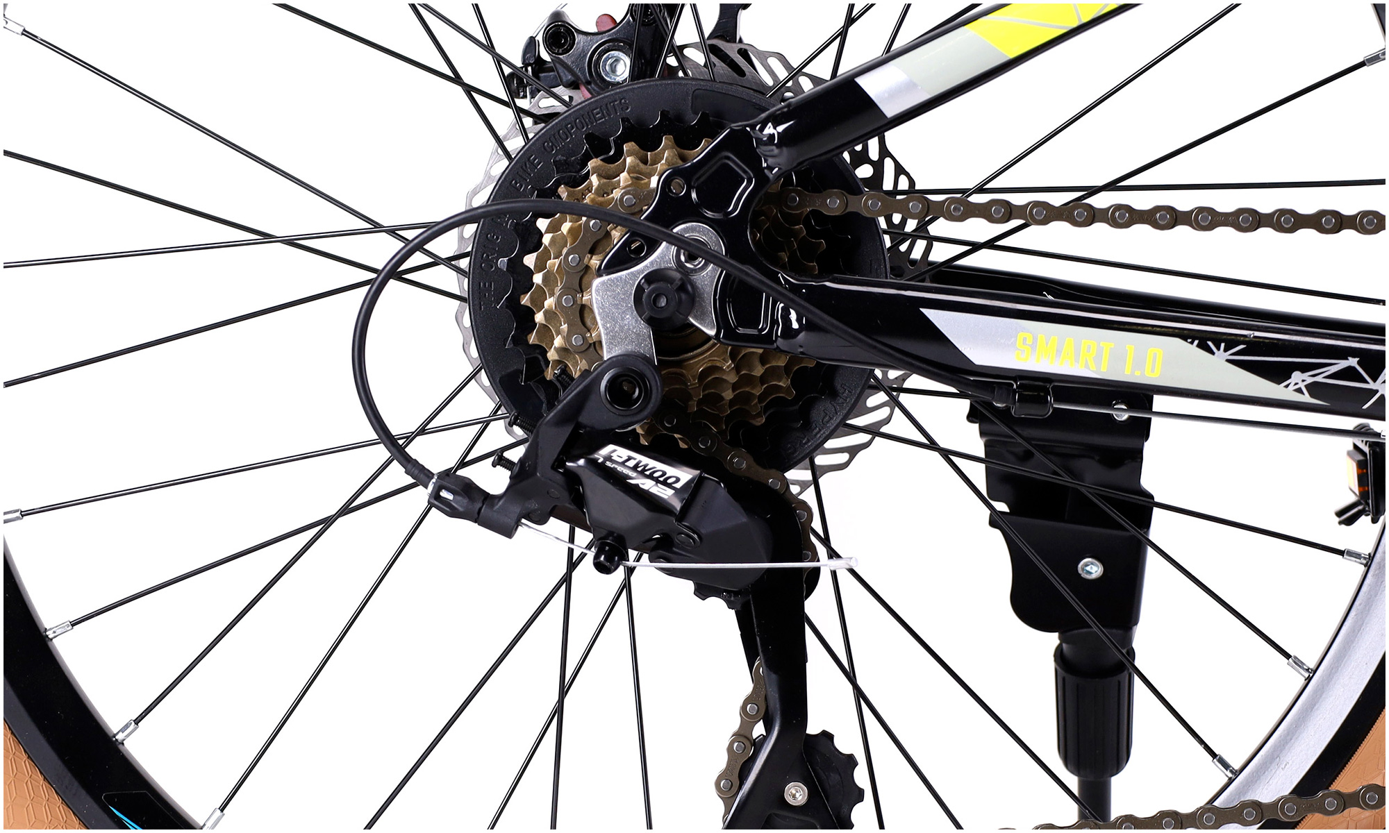Легкий детский горный велосипед со скоростями для юных велосипедистов ростом 130-155 см, собранный на алюминиевой раме и жесткой стальной вилке. Модель Smart отличается заниженной верхней трубой. Благодаря трансмиссии L-TWOO на семь скоростей и дисковым механическим тормозам он отлично подойдет и для асфальта, и для бездорожья.