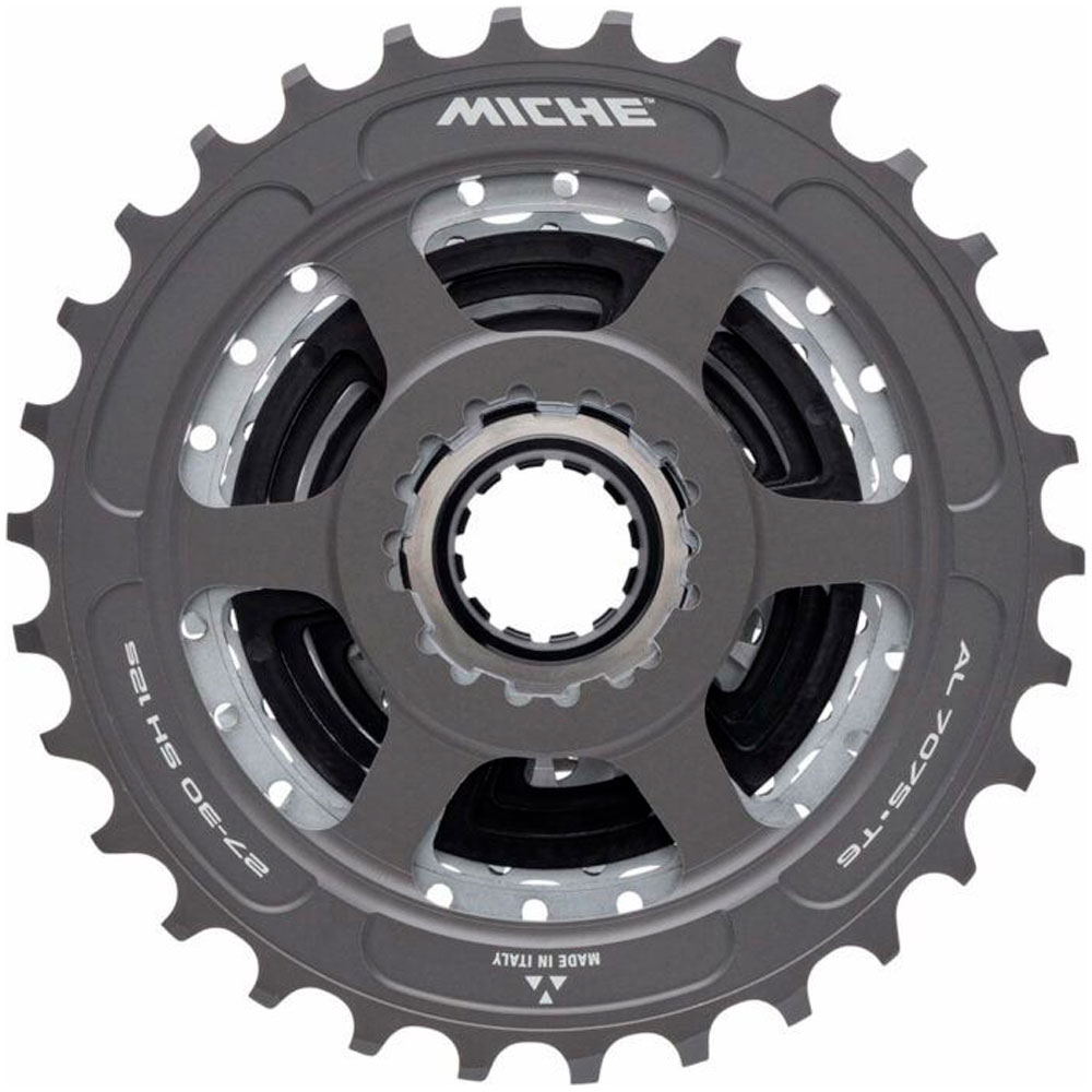 Кассета для шоссейных велосипедов со втулками стандарта Shimano. Звезды смешанной конструкции, 10 стальных звезд в сочетании с моноблоком двух больших звезд из алюминия 7075-T6.