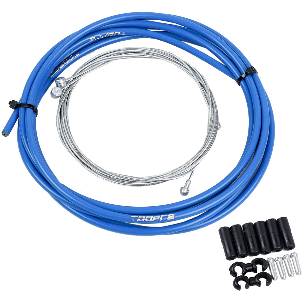 Комплект тросов и рубашек для МТБ и шоссейных велосипедов. В комплекте рубашка (2,5 м), два тросика (1,55 и 2,1 метра), наконечники для рубашки и тросика и защитные элементы для рамы.